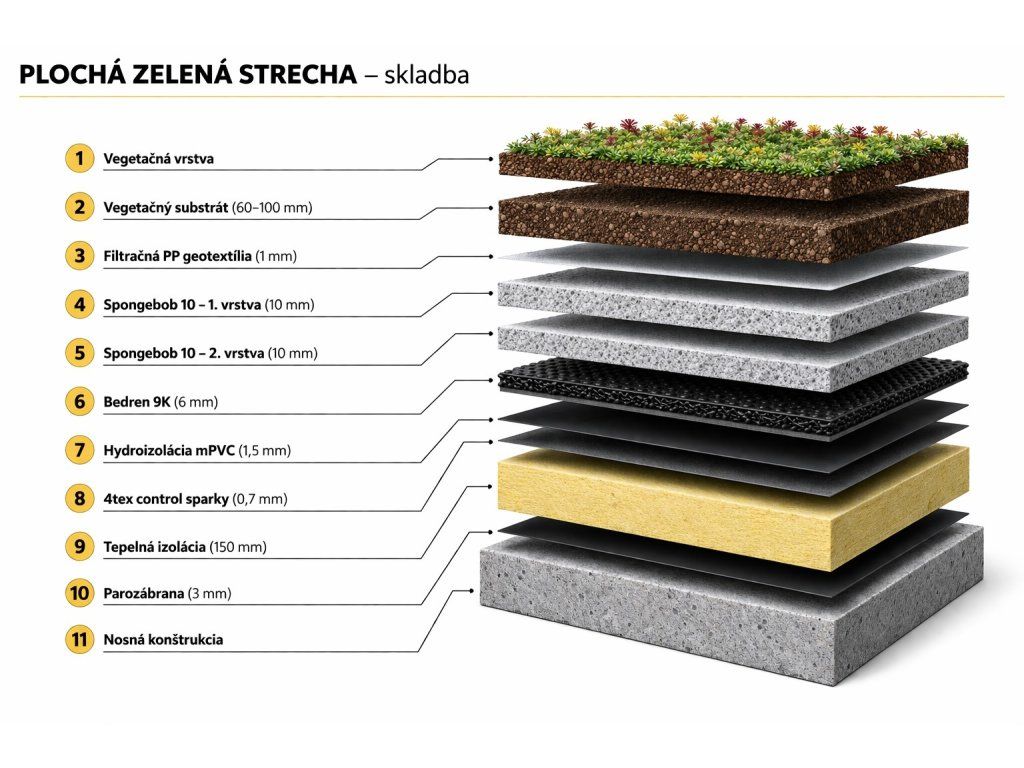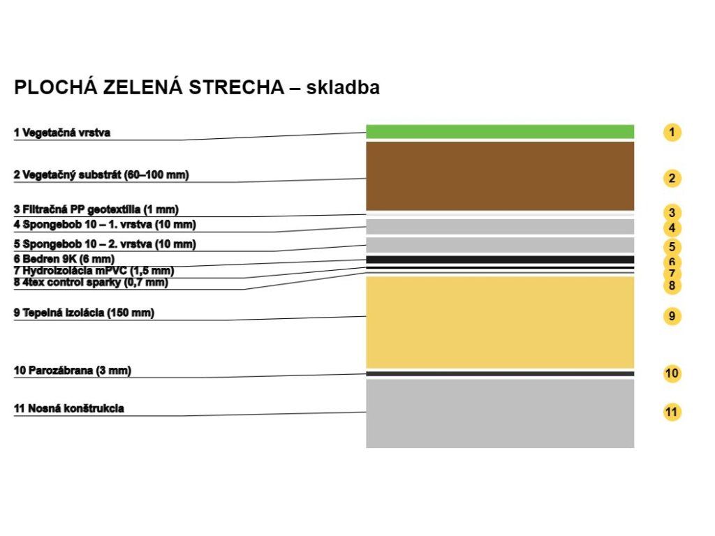 - Ako ochrannú a drenážnu vrstvu medzi hlavnú hydroizoláciu a hydroakmulačnú vrstvu SPONGEBOB 10, odporúčame použiť materiál BEDREN 9K