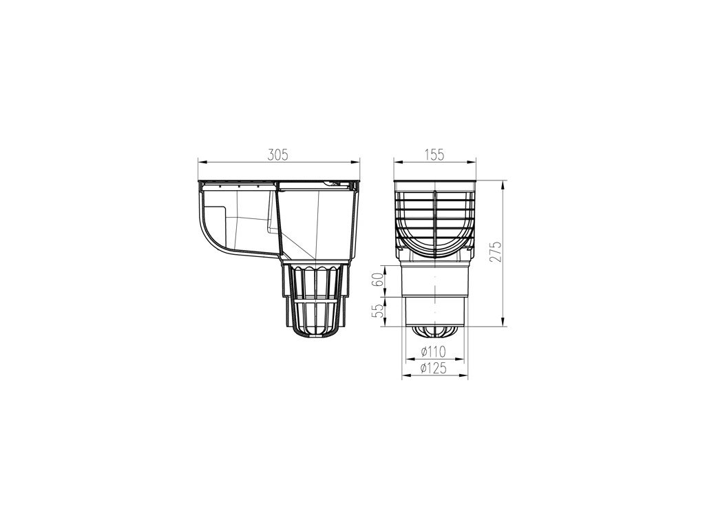 Lapač strešných splavenín spodný D110/125 je určený na odvod dažďových (povrchových) vôd do kanalizačných systémov mimo budov a umožňuje pripojenie odkvapových zvodov.