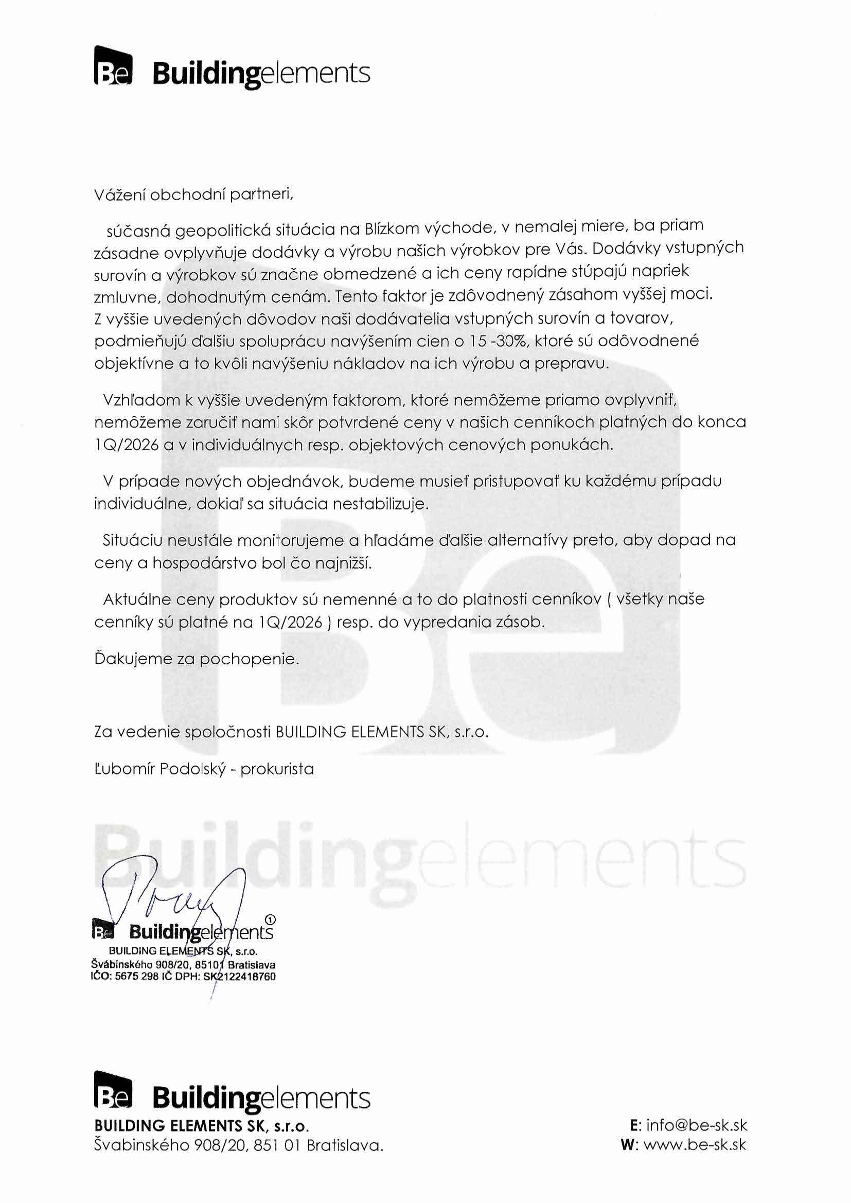 Cenník HYDROTOP, HYDODREN a HYDROSEAL: BUILDING ELEMENTS SK 0 - spodná stavba HYDROTOP HYDROSEAL BEDREN - Cenník 1 Q 2026 SK