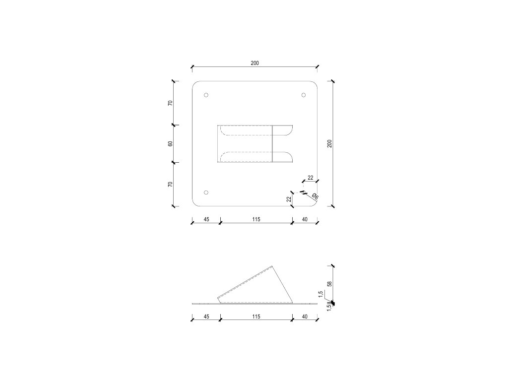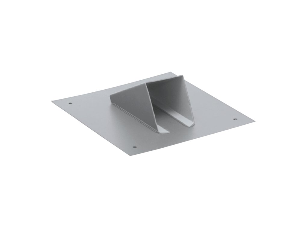 Spodný diel štvorcového tvaru slúži na ukotvenie snehovej zábrany ku konštrukčnému podkladu a je opatrený v rohoch otvormi s priemerom 6,2 mm. Zároveň umožnuje vodotesné napojenie na hlavnú hydroizolačnú vrstvu preplátovaním a teplovzdušným zvarením na lícnu stranu spodného dielu opatreného PVC-P vrstvou.