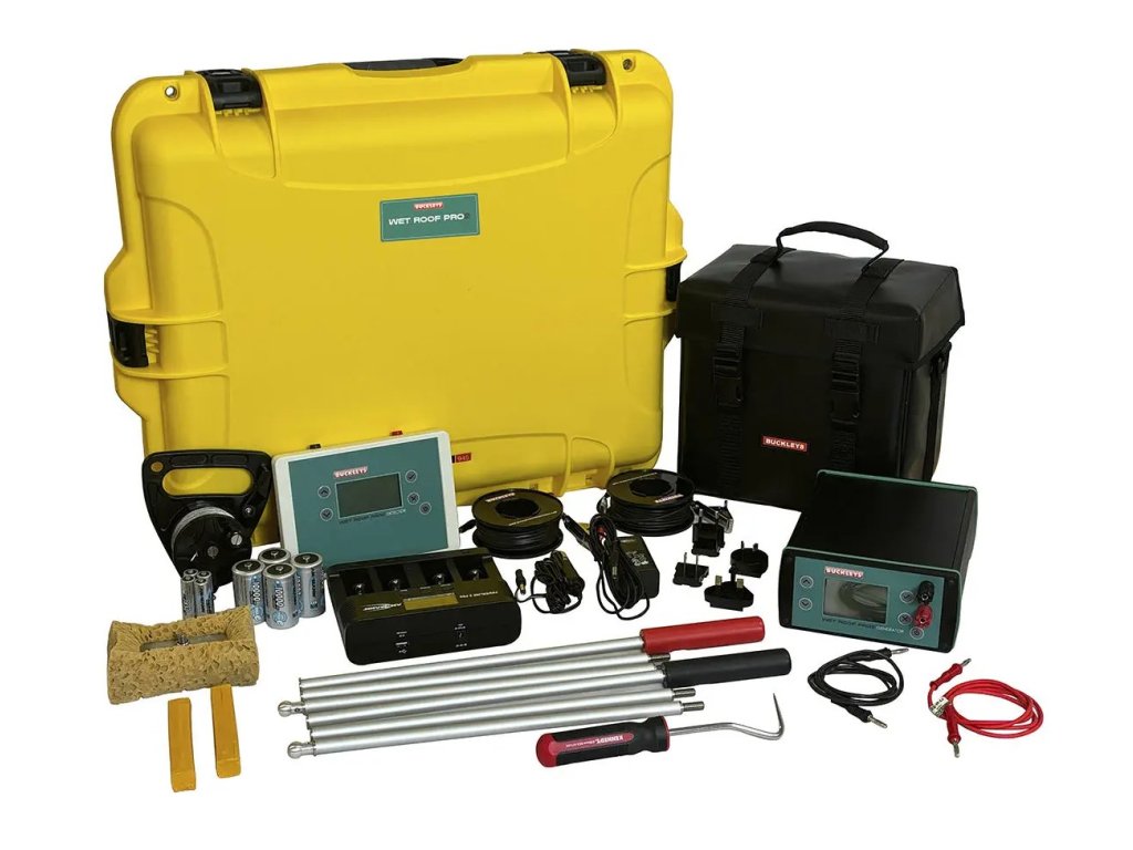 Súprava na detekciu únikov BUCKLEYS WET ROOF PRO2 na identifikáciu a lokalizáciu únikov v plochých strechách.