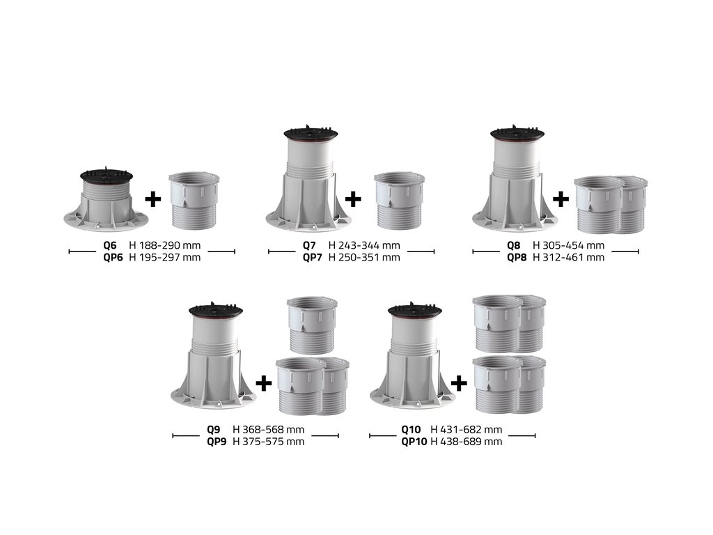 Výškovo nastaviteľný a samonivelačný (reguluje spád do 5%) terč pod dlažbu. Univerzálna hlava má protišmykovú a protihlukovú vrstvu s tromi dištančnými planžetami šírky 2, 3 a 4mm Možnosť regulovať výšku aj po položení dlažby. Patentované.