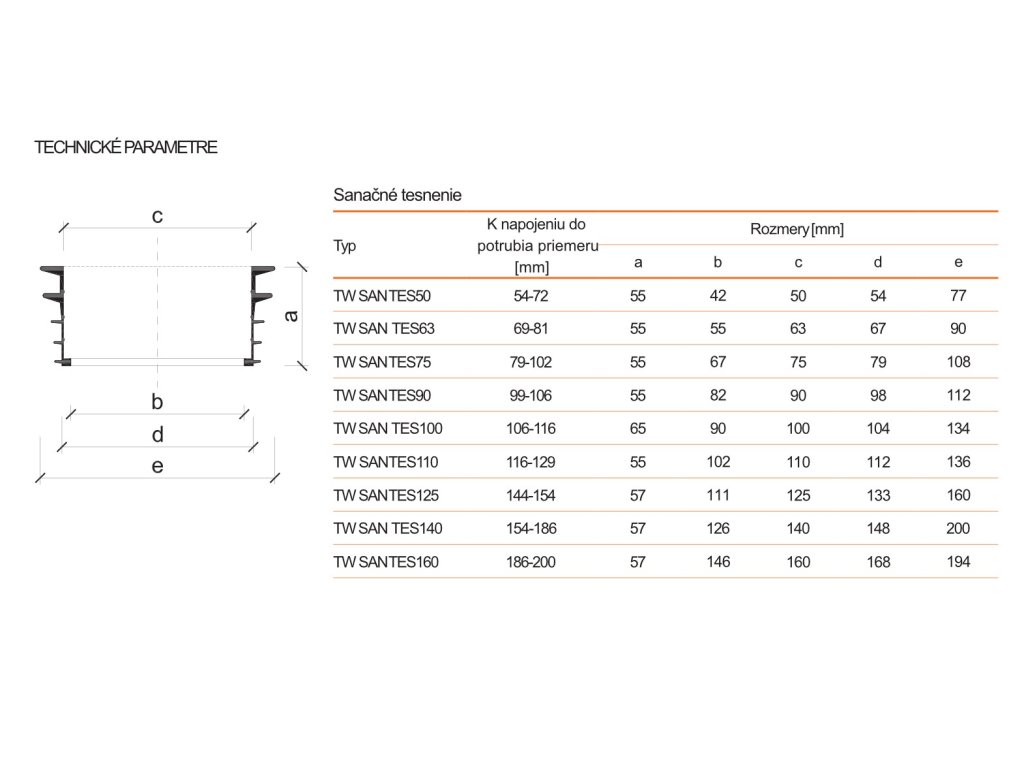 Sanačné tesnenie pre TW SAN a TWOP SAN, vhodná pre všetky vyhotovenia bez ohľadu na typ použitej manžety.
