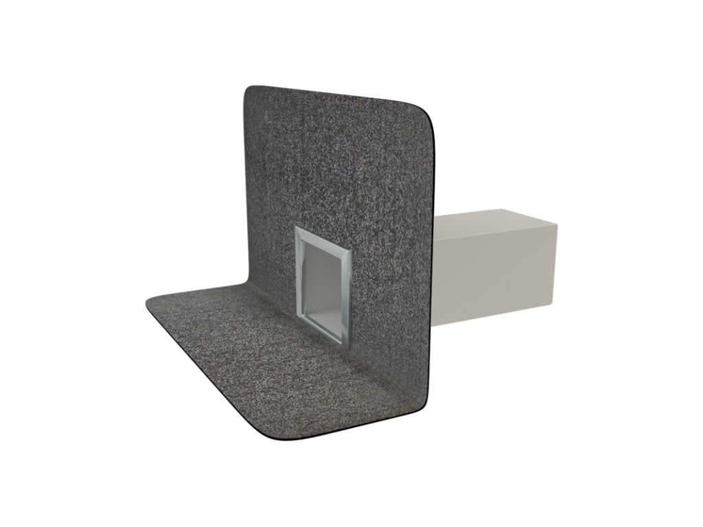 Hranatý strešný chrlič s bitumenovou manžetou z modifikovaného asfaltového pásu, bez ochranného koša.