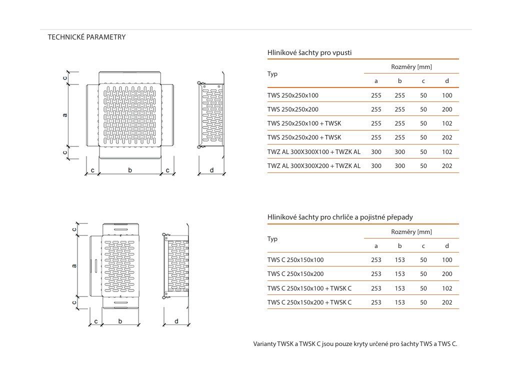 Rozmery šachty sú uvádzané ako: šírka x hĺbka x výška.