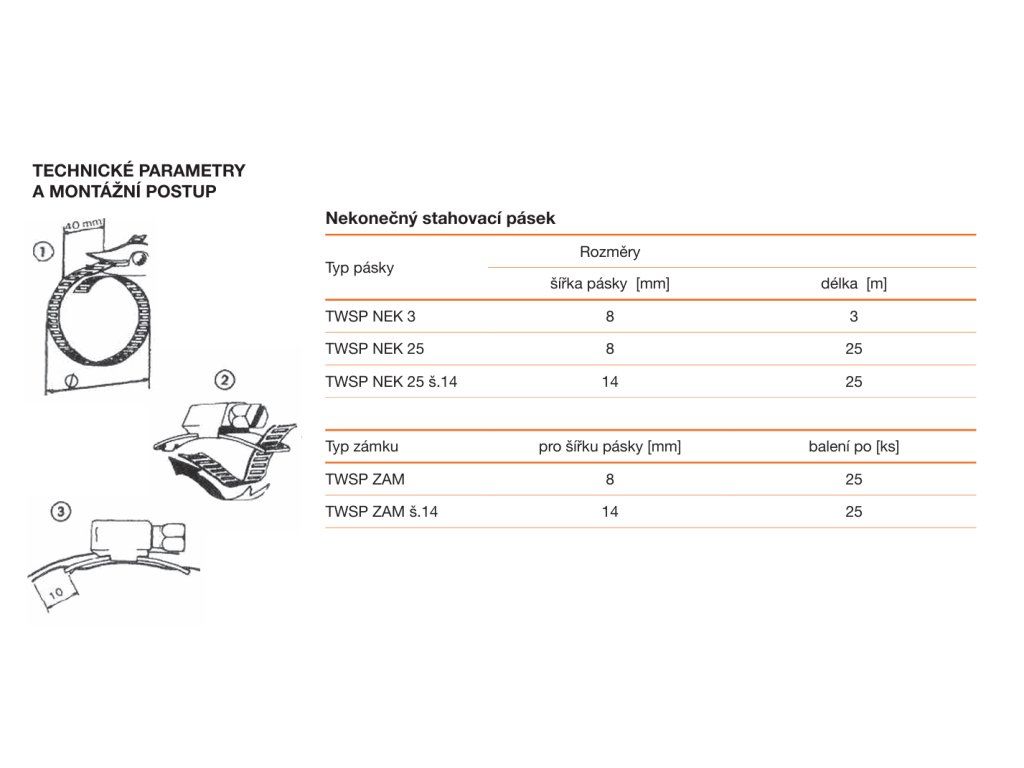 Nekonečný celonerezový sťahovací pásik so samostatnými zámkami pre vodotesné ukončenie TWOT a TWUT na prestupujúcich konštrukciách.