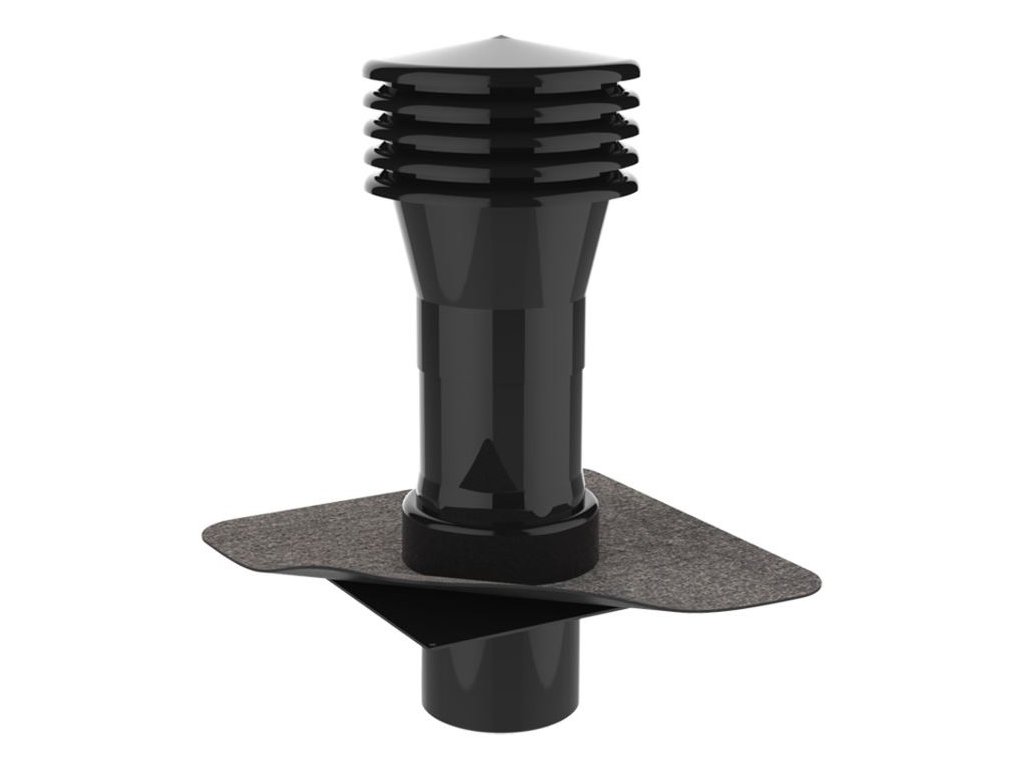 Odvetrávanie kanalizácie TOPWET pre napojenie na potrubie odvetrania s integrovanou manžetou z modifikovaného asfaltového pásu, vrátane dažďovej krytky.