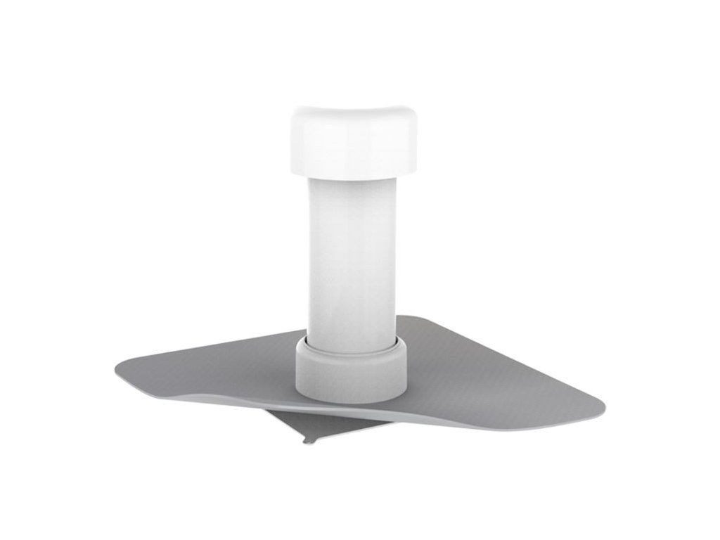 Strešný odvetrávací komínok TOPWET s integrovanou manžetou z hydroizolácie na báze mäkčeného PVC, vrátane dažďovej krytky.