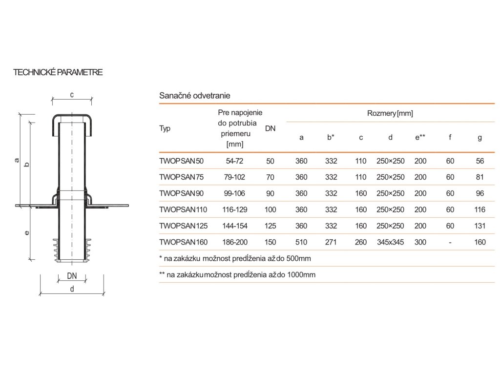 Na zakázku možnosť predĺženia až do 1500mm