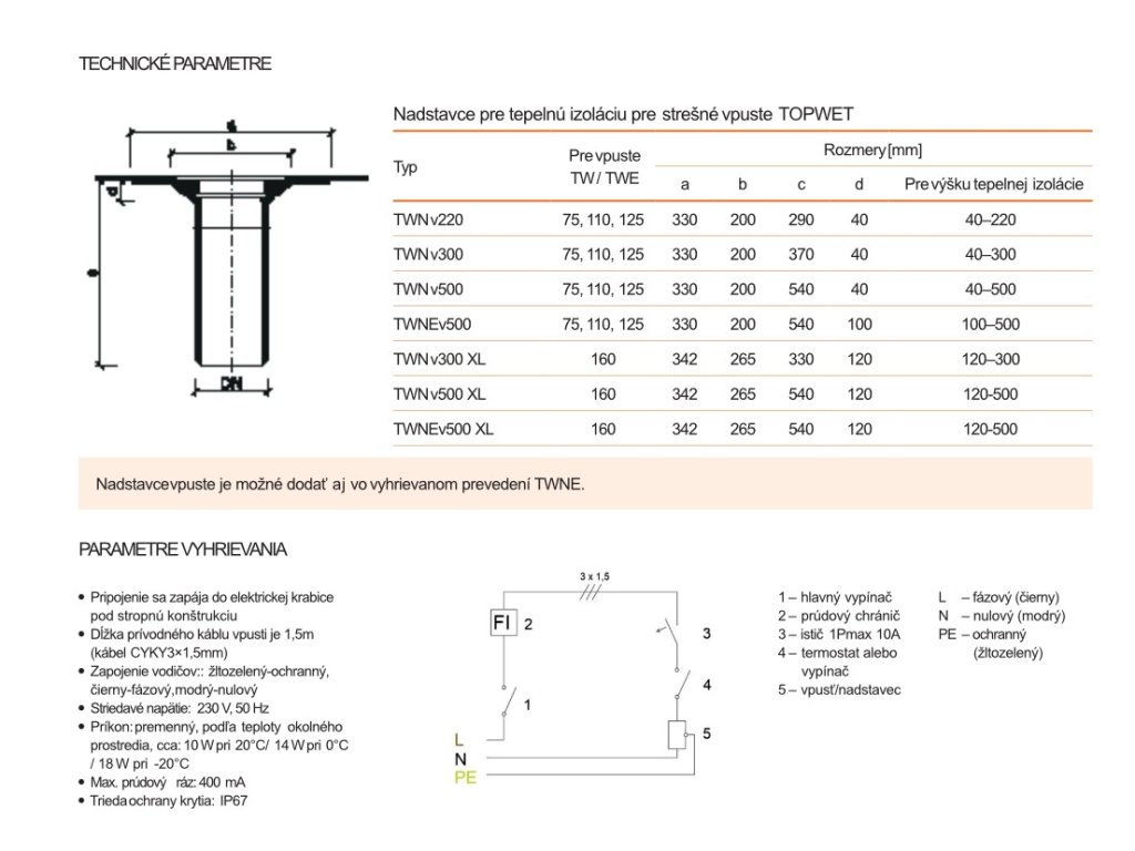 - vyhrievané nadstavce TWNE v500 (vhodné pre hrúbku tepelnej izolácie do 10 cm), termín dodania 3 dni
