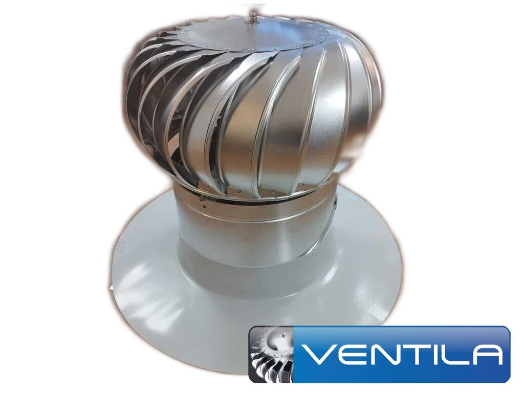 Rotačná hlavica: tvorí hnaciu silu ventilačnej turbíny. 21 kusov špeciálne aerodynamicky tvarovaných lopatiek je umiestnených a pripevnených na rotačnej hlavici taj, aby s maximálnou účinnosťou zaisťovali prenos hnanej sily vetra a svojou rotáciou vytvárali plynulý sací efekt a odťah z priestorov pod ventilačnou turbínou. Lopatky sú usporiadané tak, aby bránili zatekaniu dažďovej vody do priestorov pod turbínou. Dva bezúdržbové celokovové ložiská, ktoré sú opatrené dvojitým plastovým tesnením a trvalou mazacou náplňou, zaručujú ideálny výkon a tichý a plynulý chod ventilačnej hlavice počas celej jej doby životnosti v poveternostných podmienkach od -20°C až do +60°C. Konštrukcia ventilačnej turbíny je navrhnutá a zhotovená tak, aby odolávala vetru až do rýchlosti minimálne 120 km/h. Spojenie ventilačnej turbíny s krkom a podstavou je zaistené skrutkovým metrickým spojom a tým je zaistená bezpečnosť pred prípadným vytrhnutím pri nárazových vetroch.